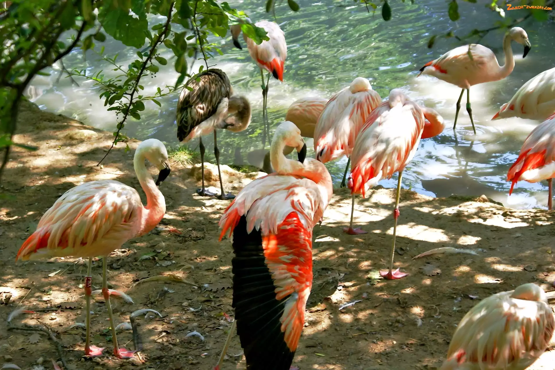 Zdjęcie: Drzewo, Woda, Flamingi, Przebijające światło
