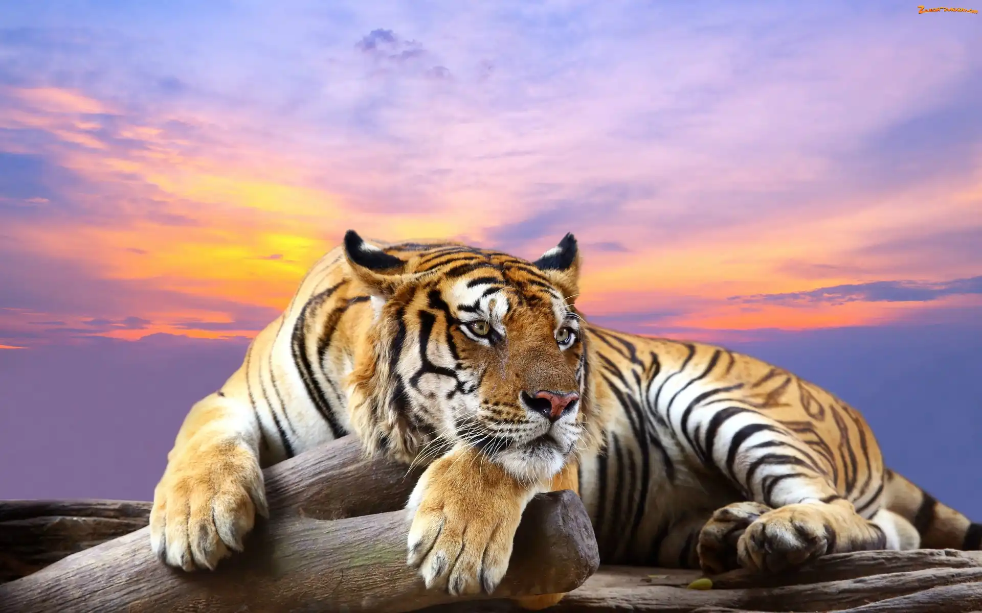 Zdjęcie: Drzewo, Słońca, Tygrys, Zachód