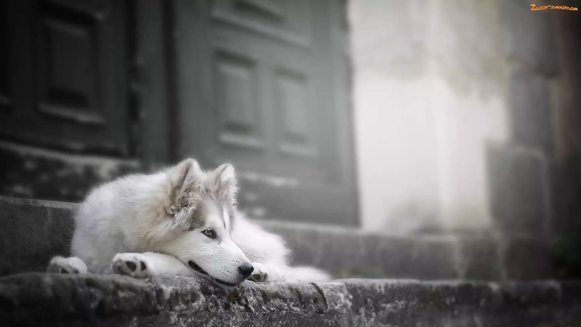 Zdjęcie: Drzwi, Schody, Siberian husky, Pies, Mordka