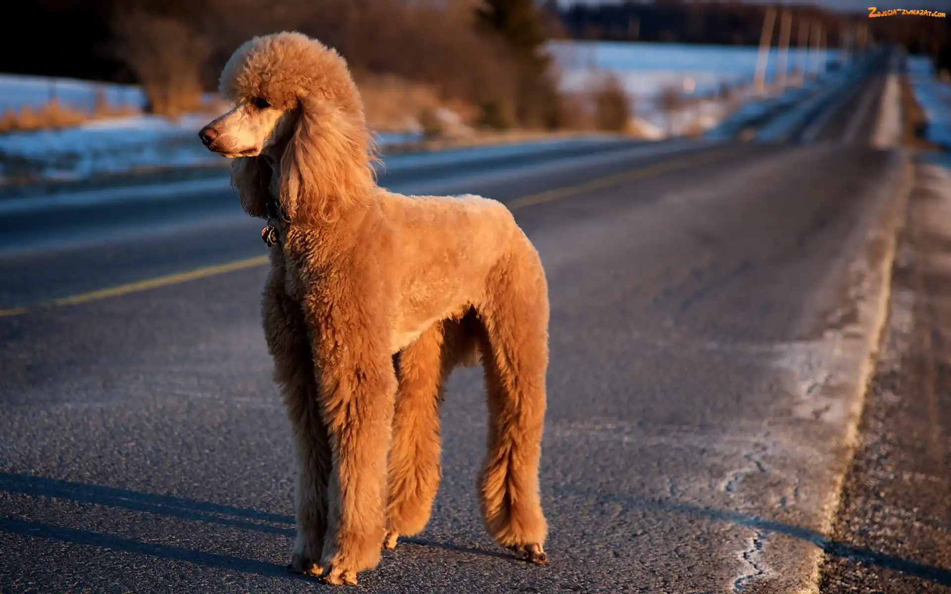 Droga, Duży, Pudel biały, Pudel duży Róże, Pudel, Czerwone