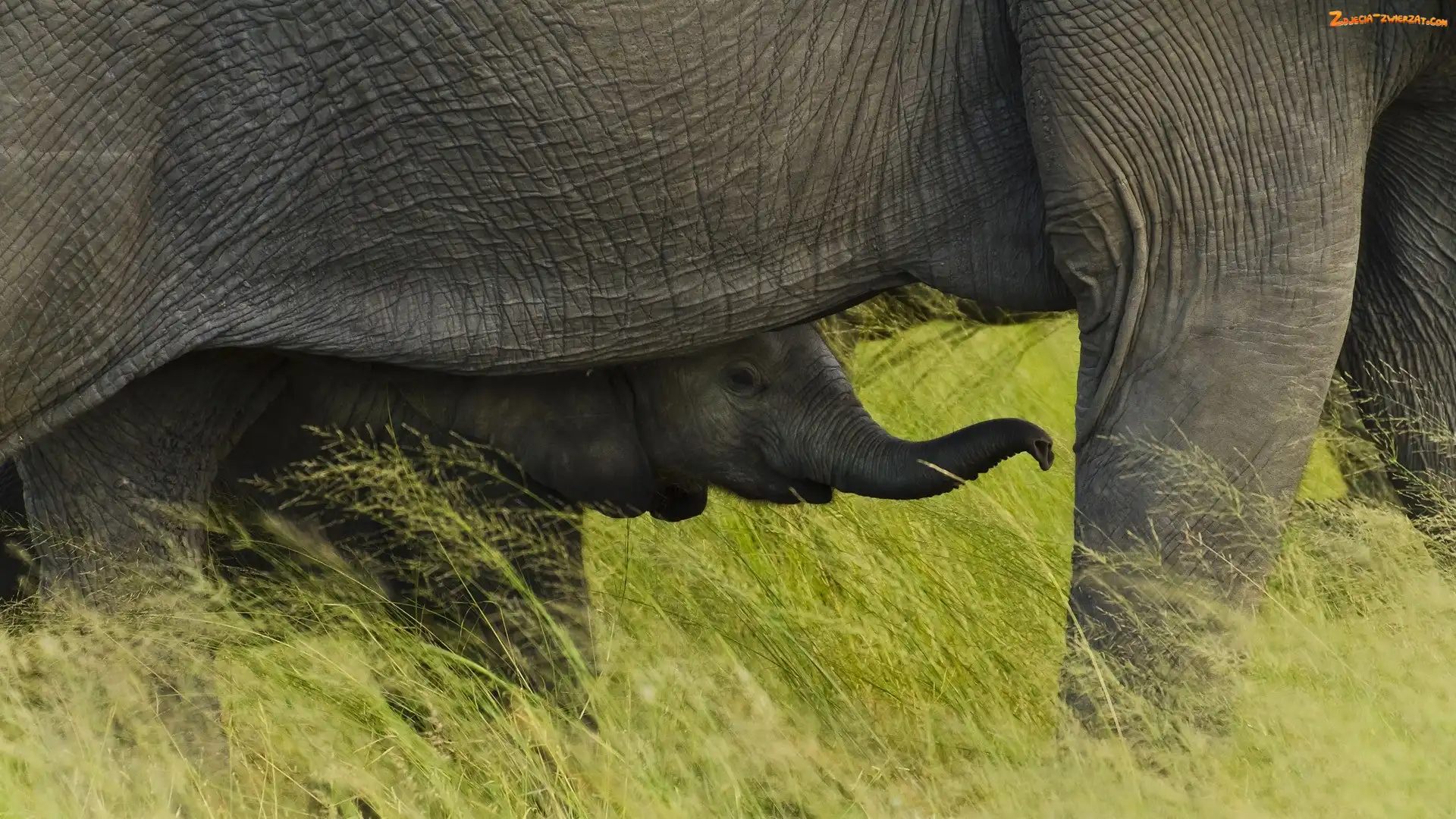 Zdjęcie: Duży, Trawa, Słoń, Mały