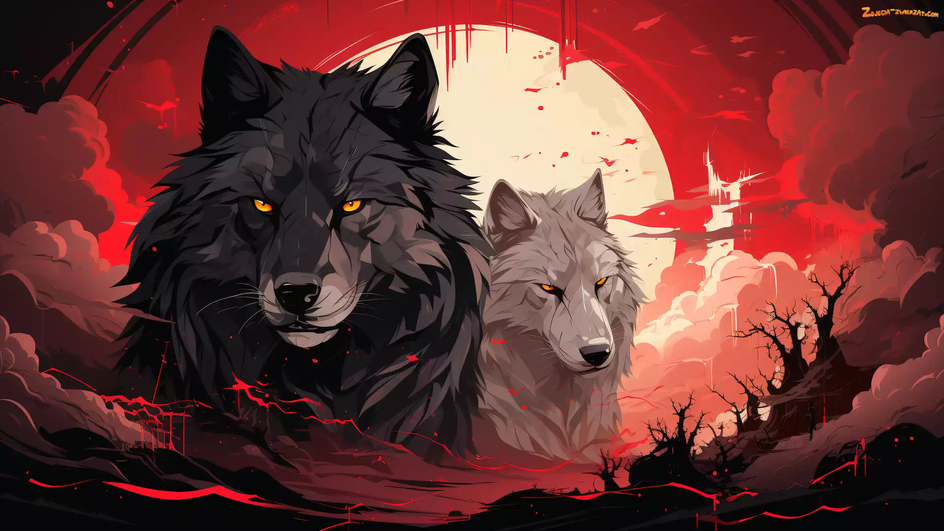 Zdjęcie: Obłoki, Wilki, Grafika, Dwa, Czarny, Biały
