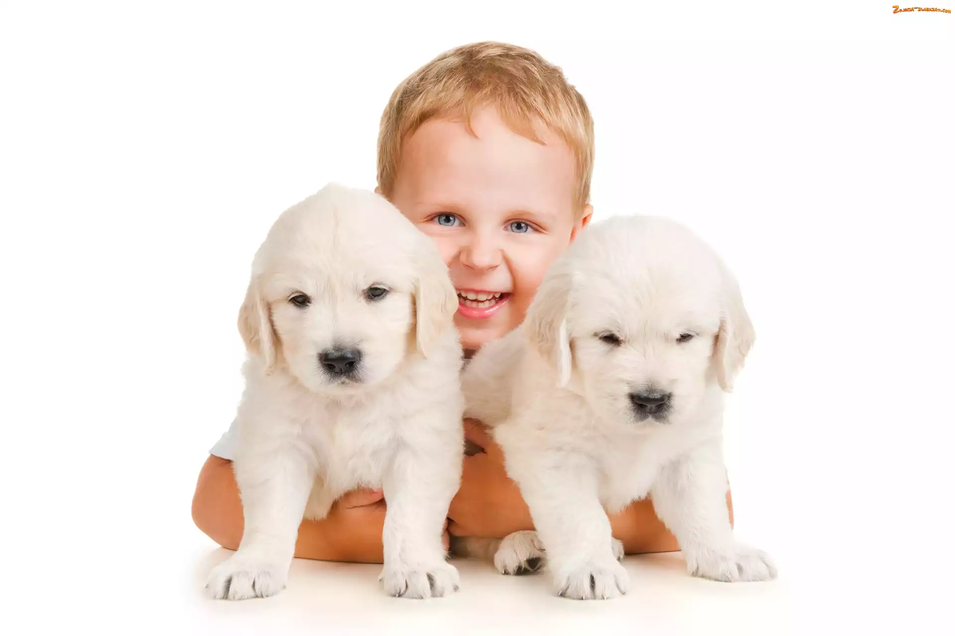 Zdjęcie: Dwa, Szczeniaki, Chłopiec, Białe