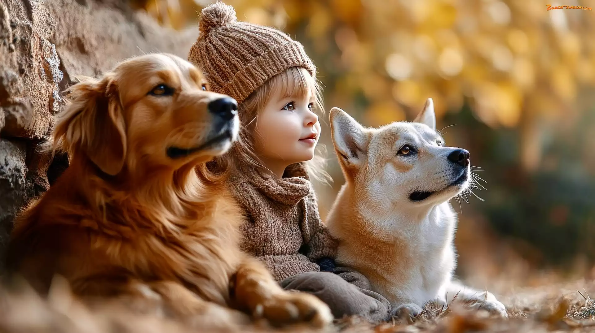 Zdjęcie: Dziecko, Dziewczynka, Psy, Dwa