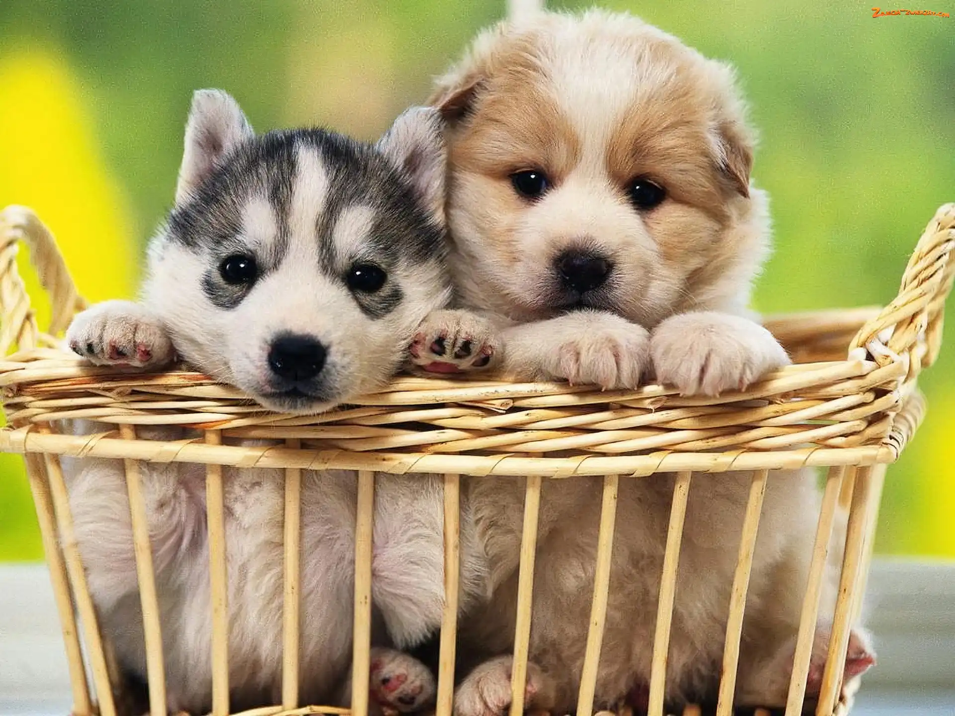 Zdjęcie: Dwa, Szczeniaczki, Siberian Husky, Koszyk
