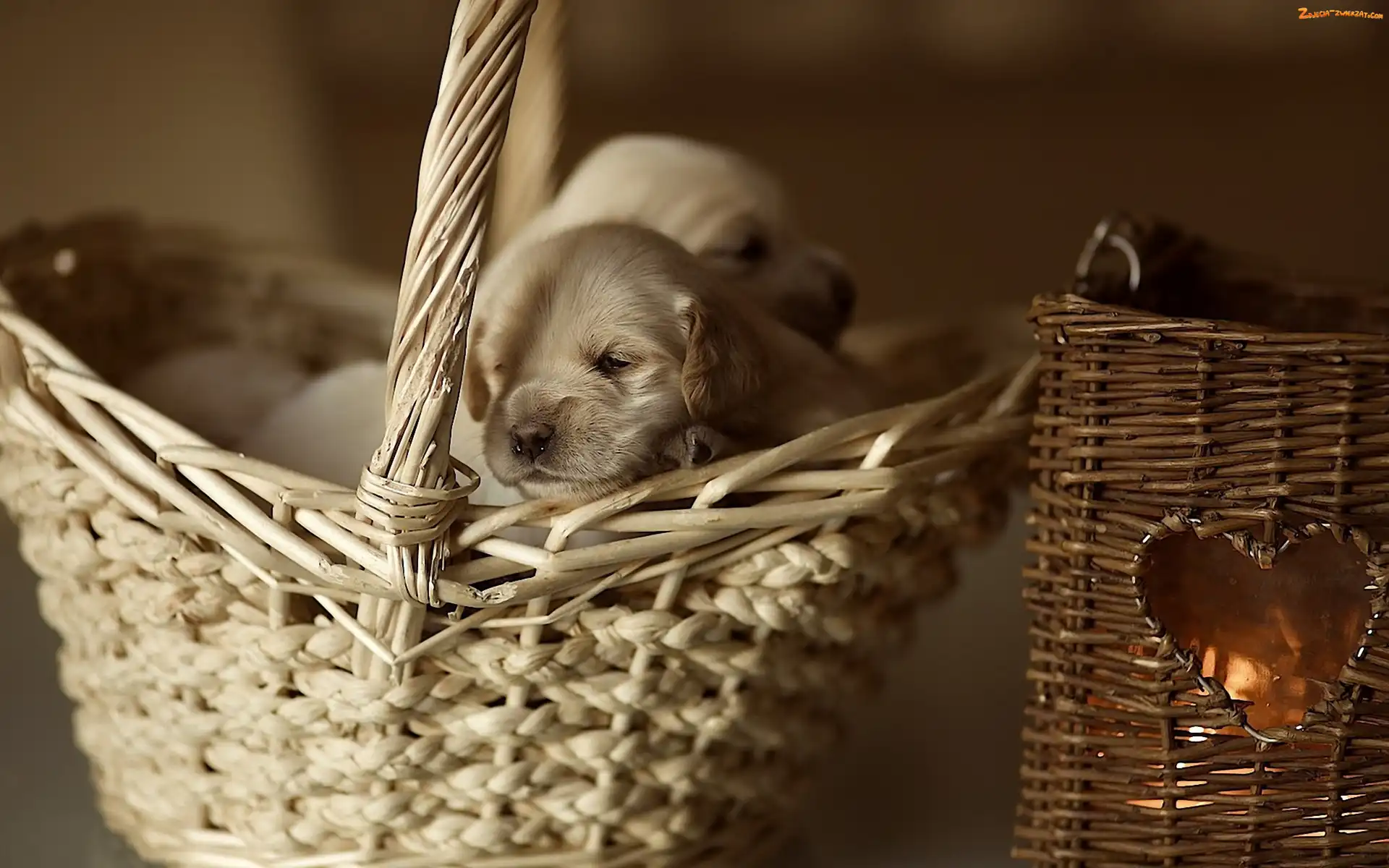Zdjęcie: Szczeniaczki, Golden Retriever, Dwa, Koszyk
