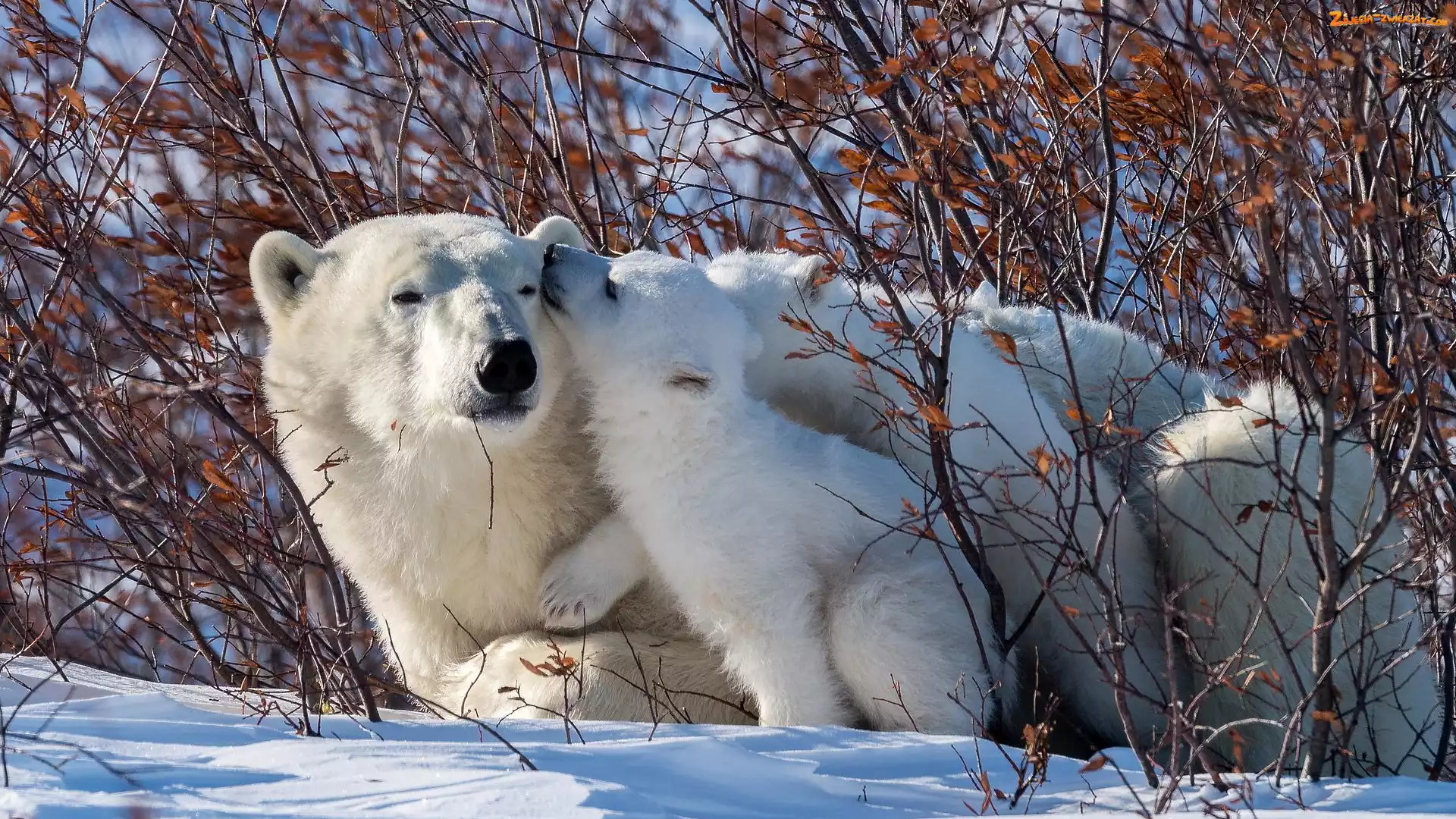 Zdjęcie: Mały, Dwa, Gałęzie, Krzewy, Niedźwiedzie polarne, Niedźwiadek