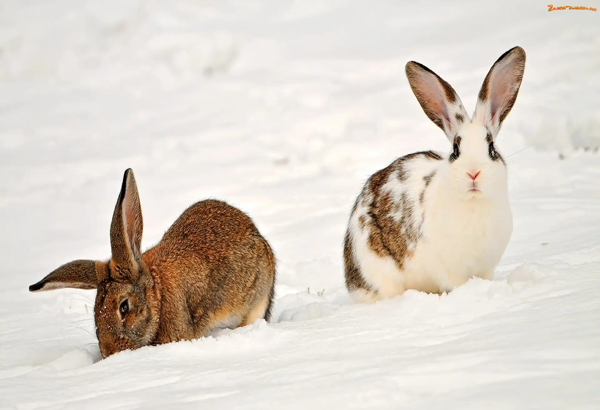 Zdjęcie: Śnieg, Dwa, Króliczki