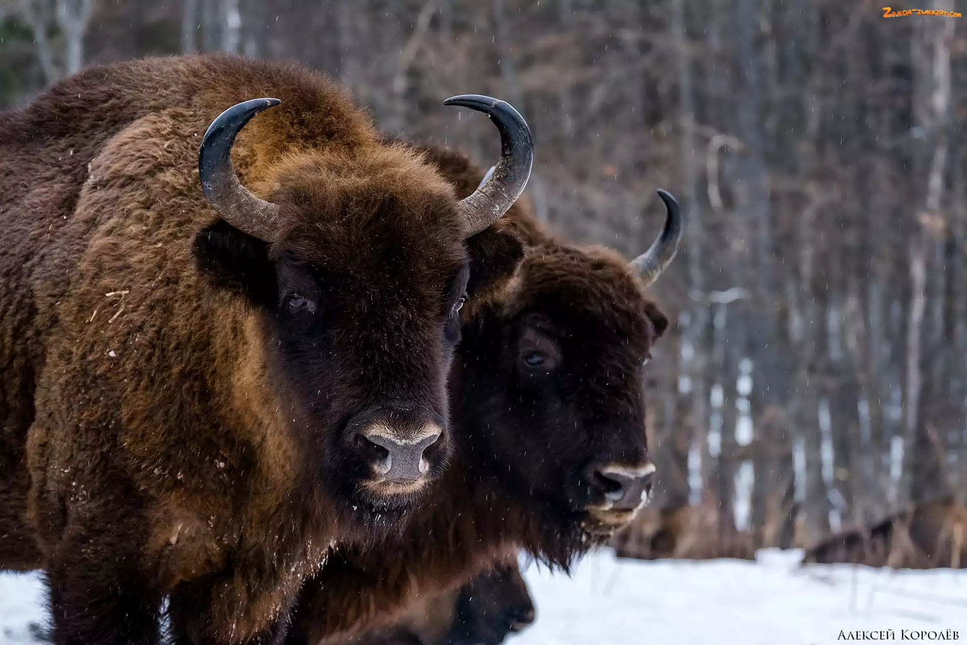Zdjęcie: Żubry, Śnieg, Dwa, Las