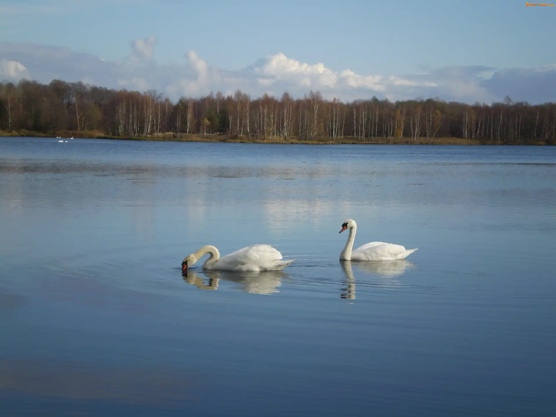 Łabędzie nieme, Drzewa, Dwa, Jezioro