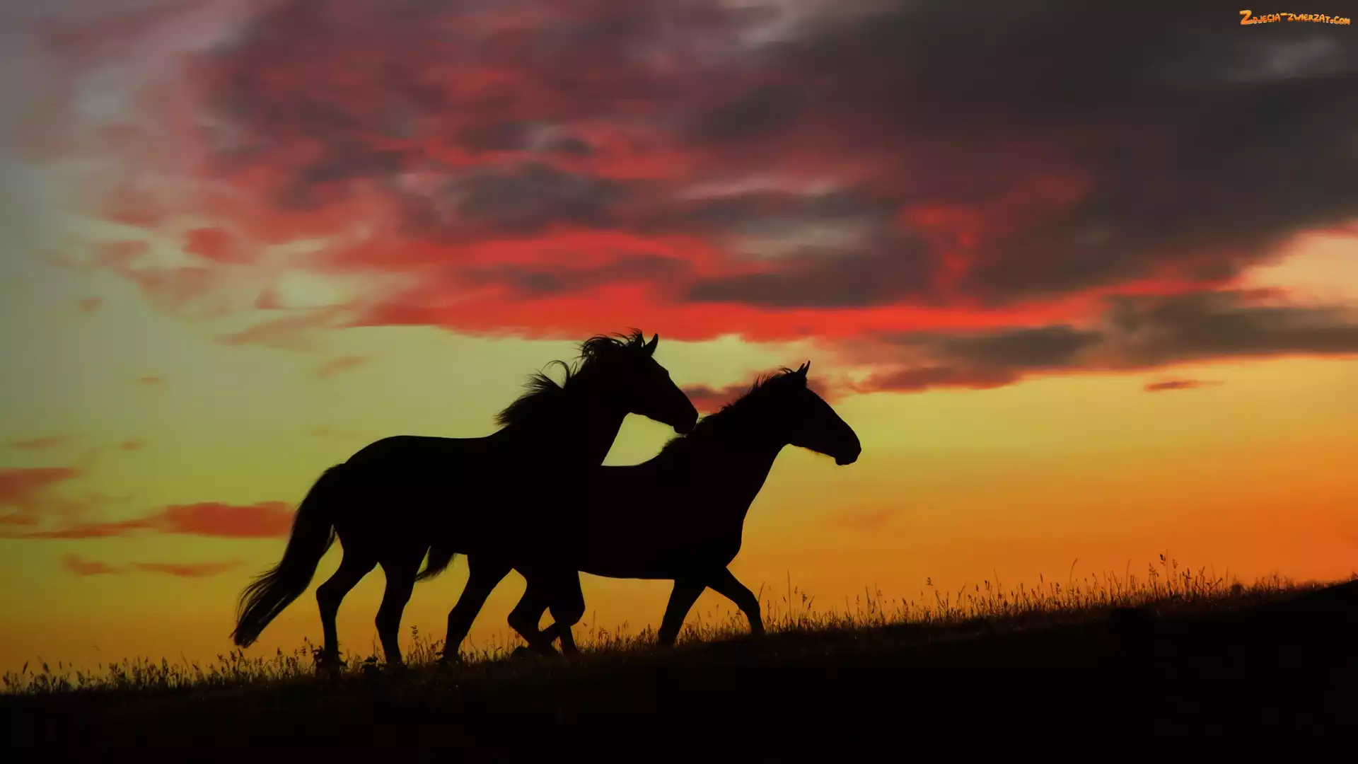 Zdjęcie: Dwa, Chmury, Zachód Słońca, Konie