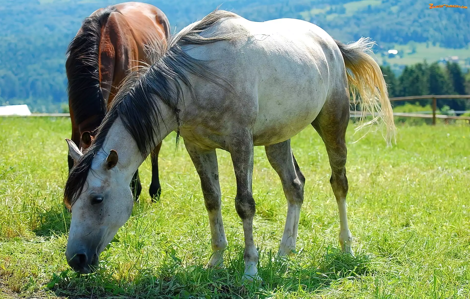 Zdjęcie: Trawa, Dwa, Konie