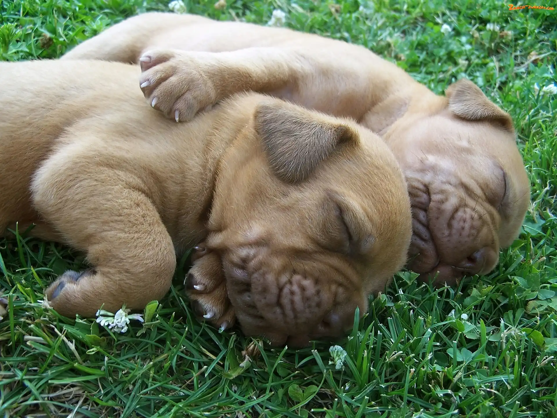 Zdjęcie: Dwa, Szczeniaczki, Dog de Bordeaux, Trawa