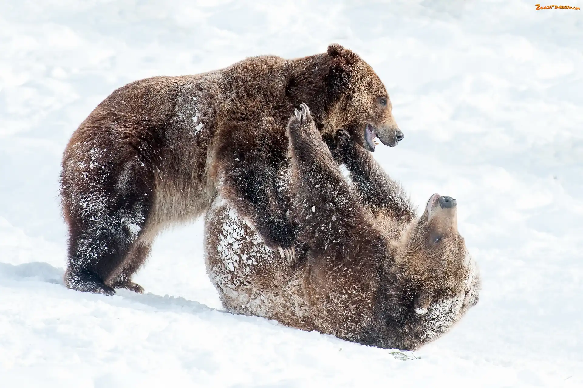 Zdjęcie: Śnieg, Zabawa, Niedźwiedzie, Dwa, Brunatne