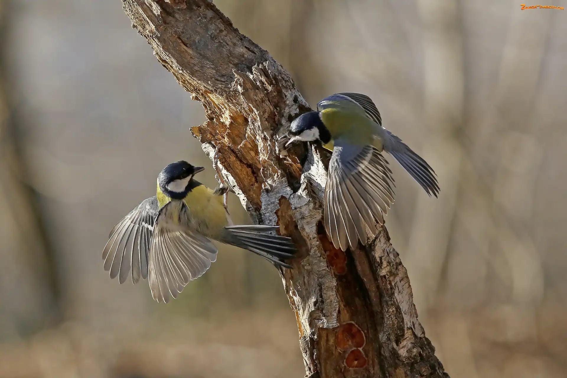 Zdjęcie: Drzewo, Dwie, Sikorki