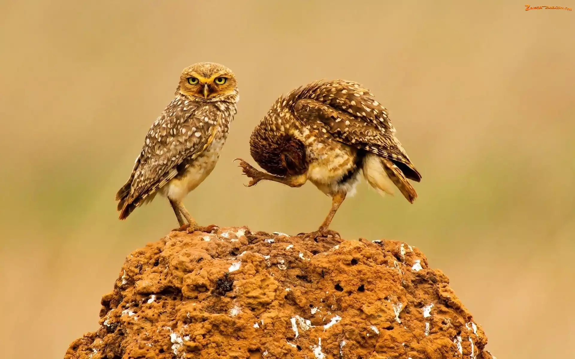Zdjęcie: Sówki, Kamień, Dwie, Ziemne