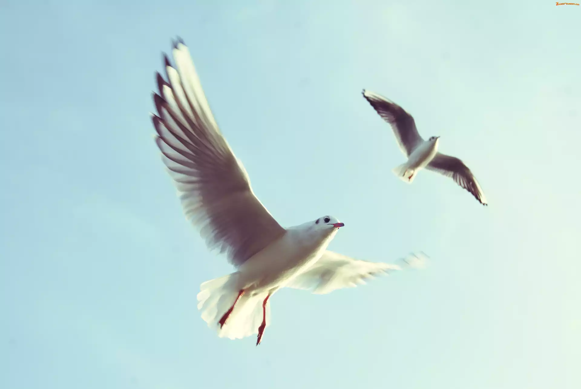 Zdjęcie: Dwie, Skrzydła, Lecące, Mewy