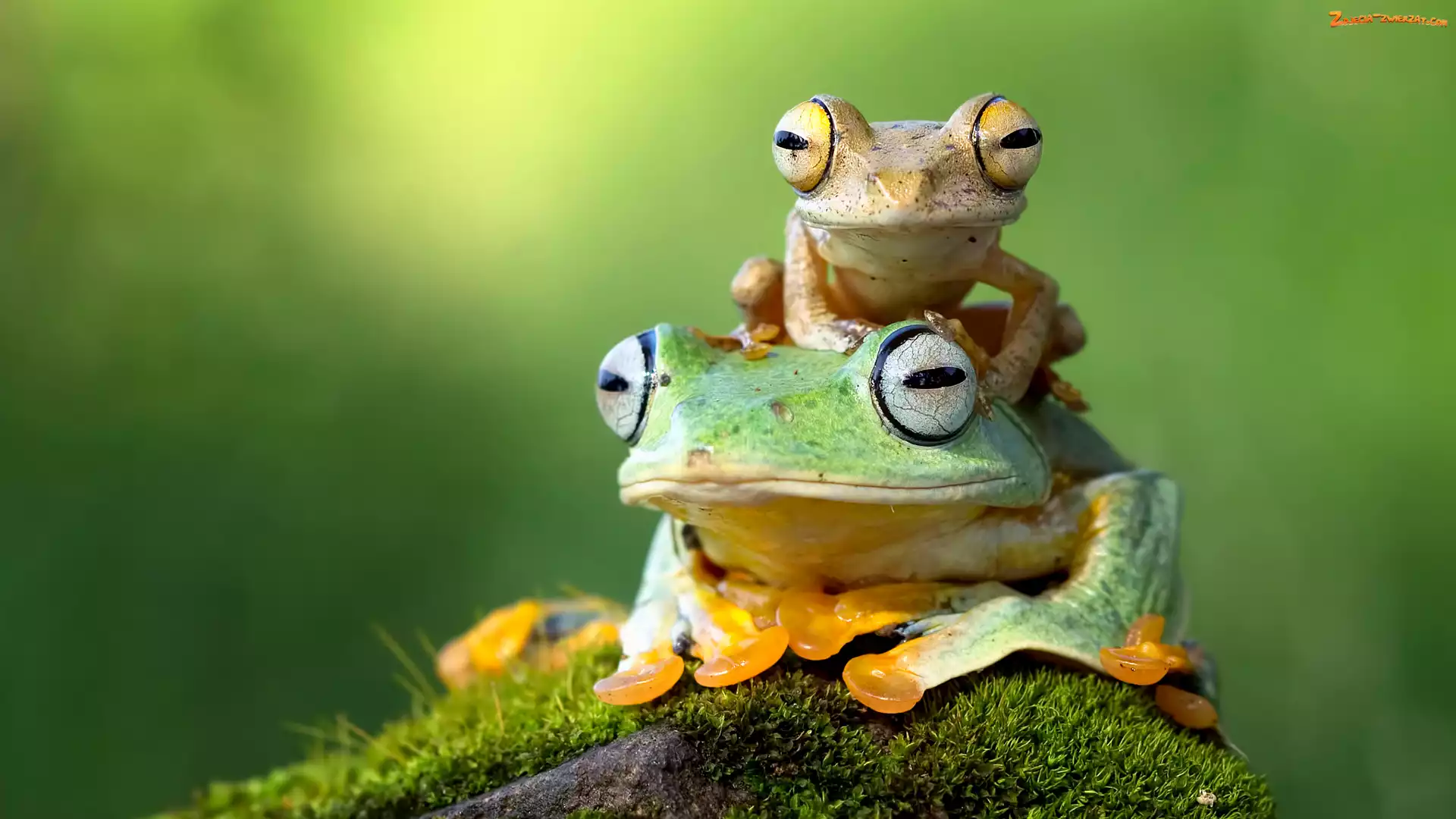 Zdjęcie: Żaby, Mech, Dwie, Skała