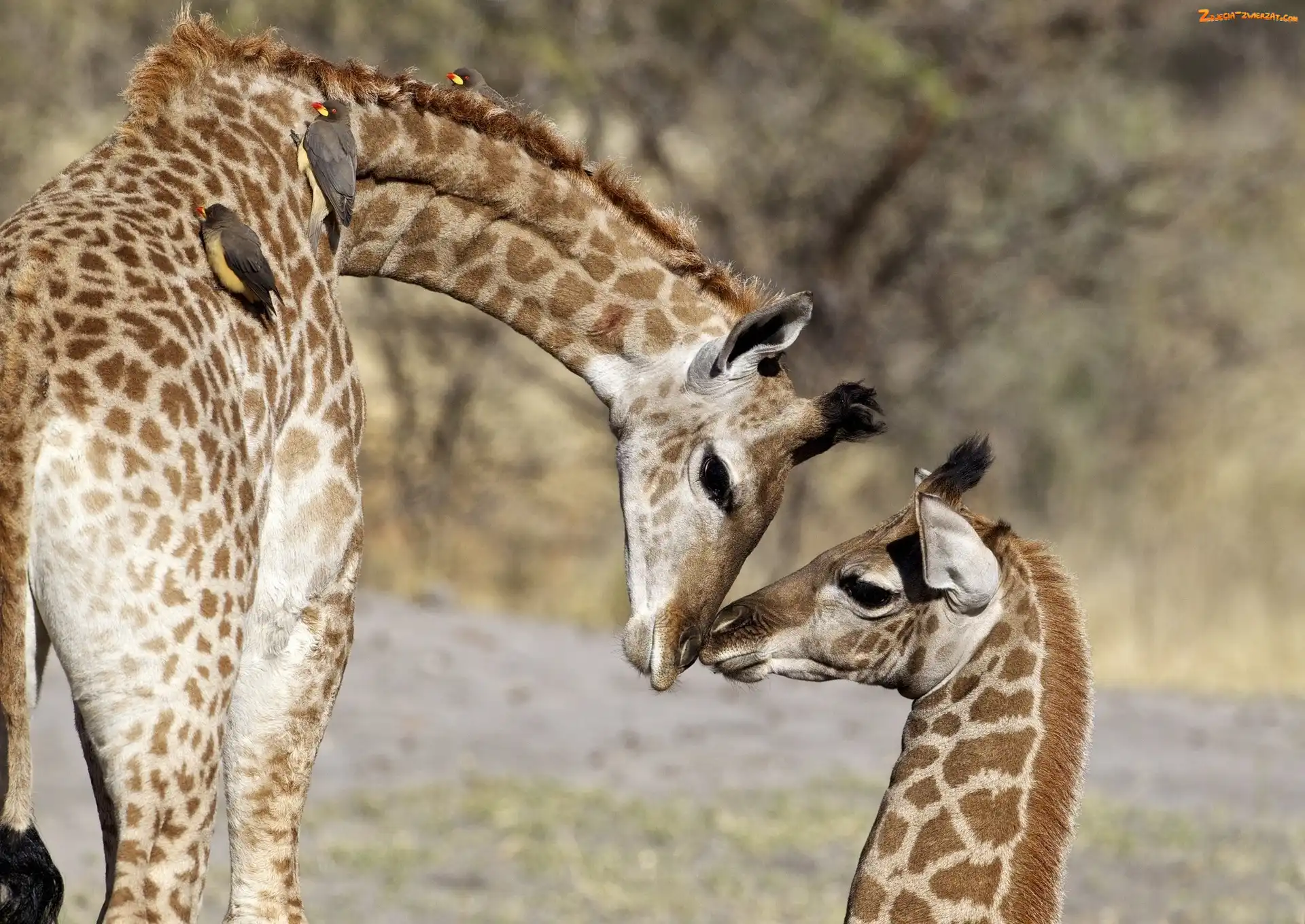 Zdjęcie: Żyrafy, Ptaków, Dwie, Towarzystwo