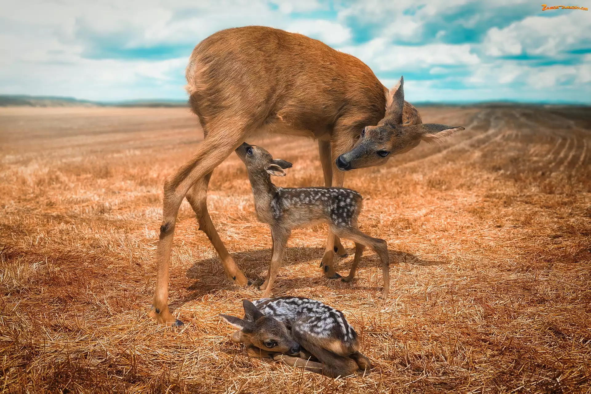Dwie, Mama, Pola, Sarenki, Sarna, Małe