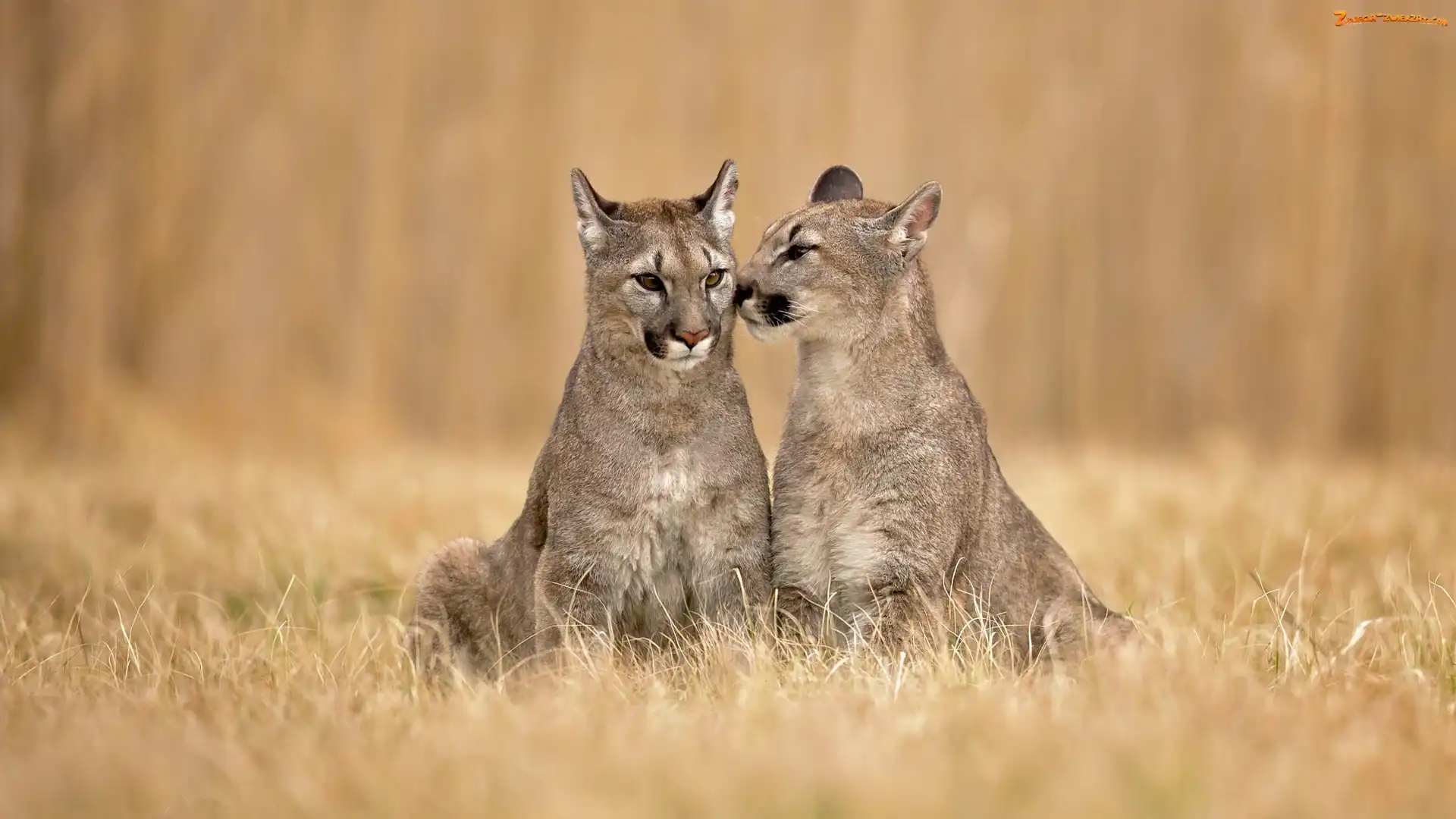 Zdjęcie: Trawa, Dwie, Pumy