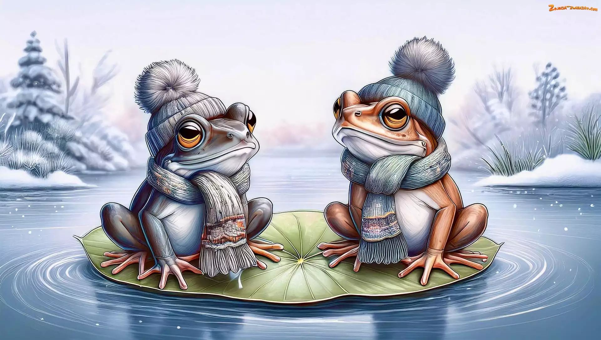 Zdjęcie: Drzewa, Żaby, Grafika, Dwie, Liść, Zima
