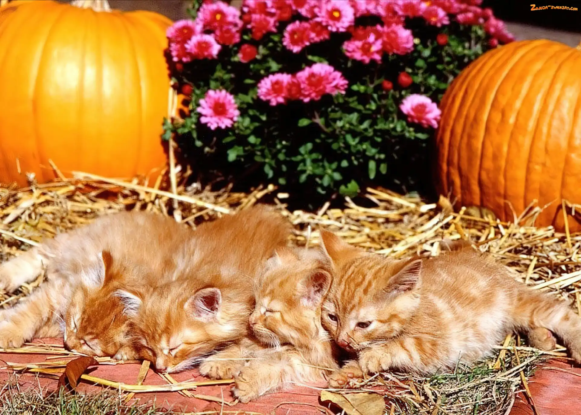 Zdjęcie: Sianko, Kotki, Dynie, Cztery, Malutkie