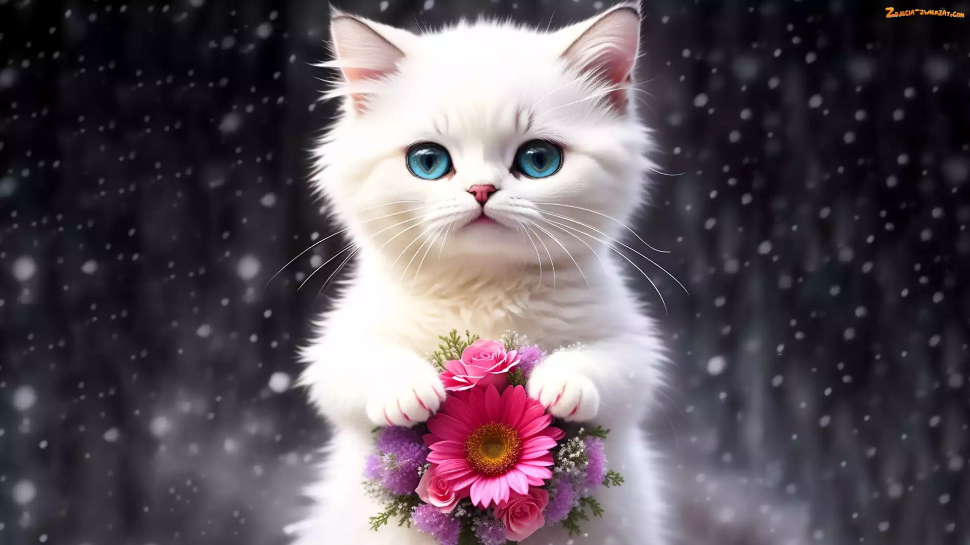 Zdjęcie: Biały, Kotek, Dla dzieci, Kwiaty Słodkie Zwierzęta