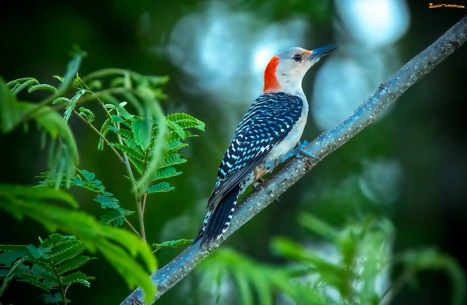 Zdjęcie: Liście, Dzięcioł, Gałązka