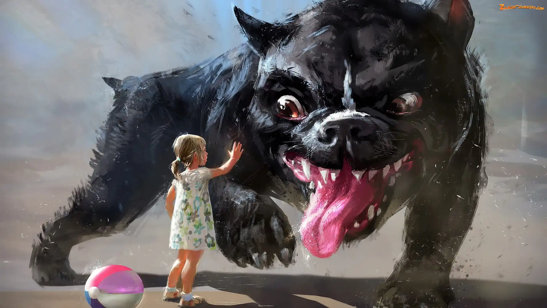 Zły, Dziecko, Digital Art, Piłka, Dziewczynka, Pies
