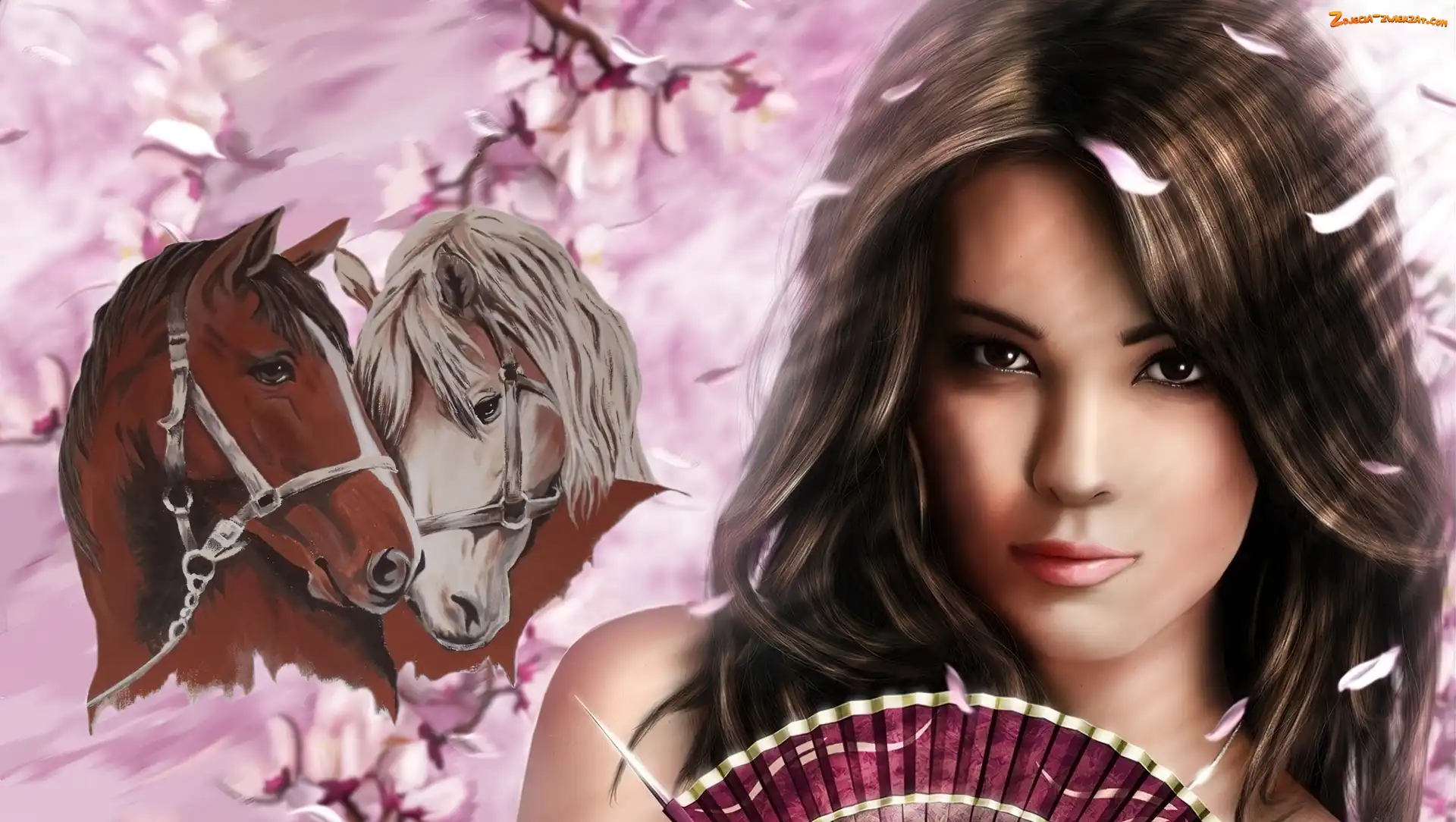 Kwiaty, Dziewczyna, Konie