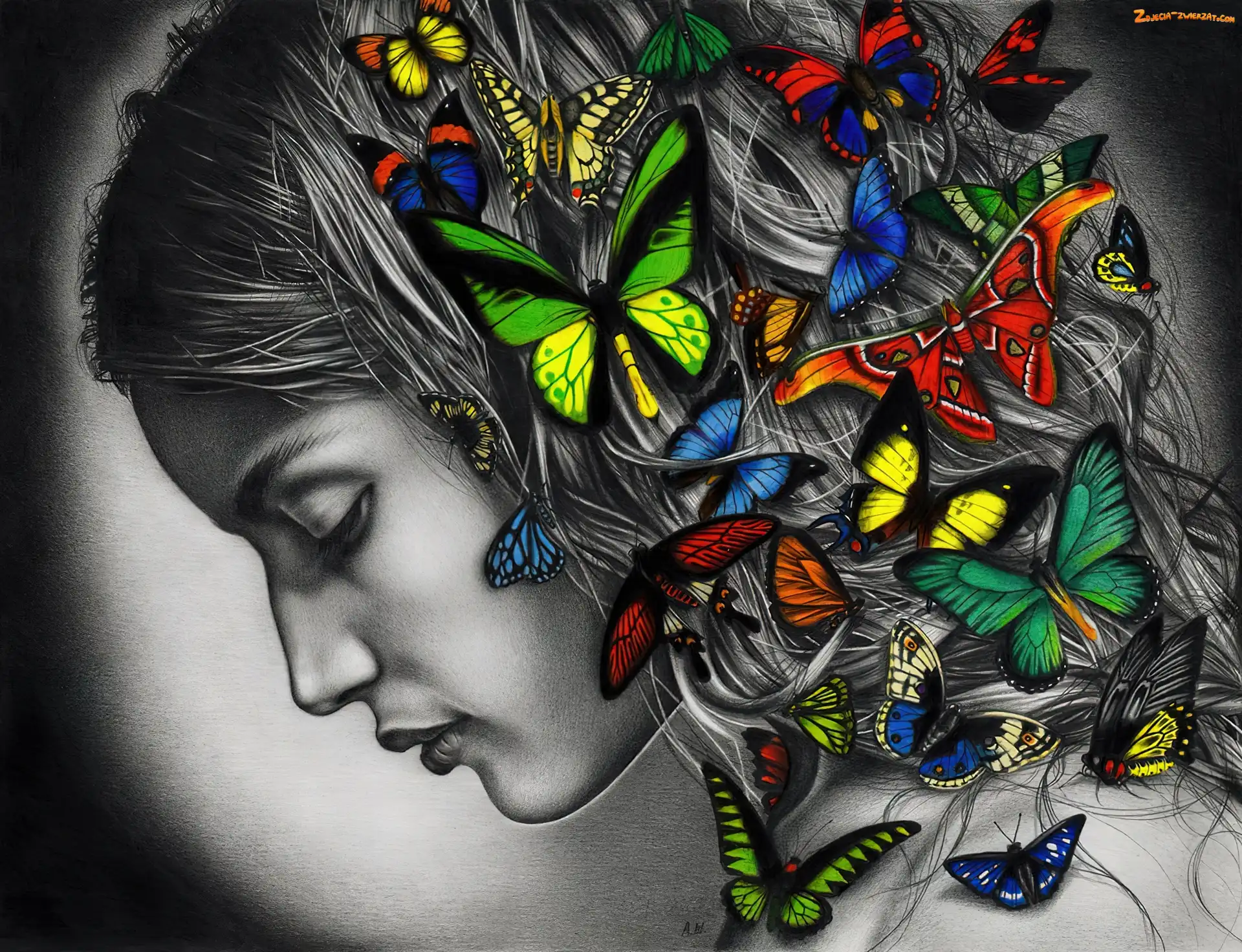 Zdjęcie: Motyle, Dziewczyna, Włosy