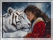Zdjęcie: Czerwony, Dziewczyna, Płaszcz, Biały, Tygrys