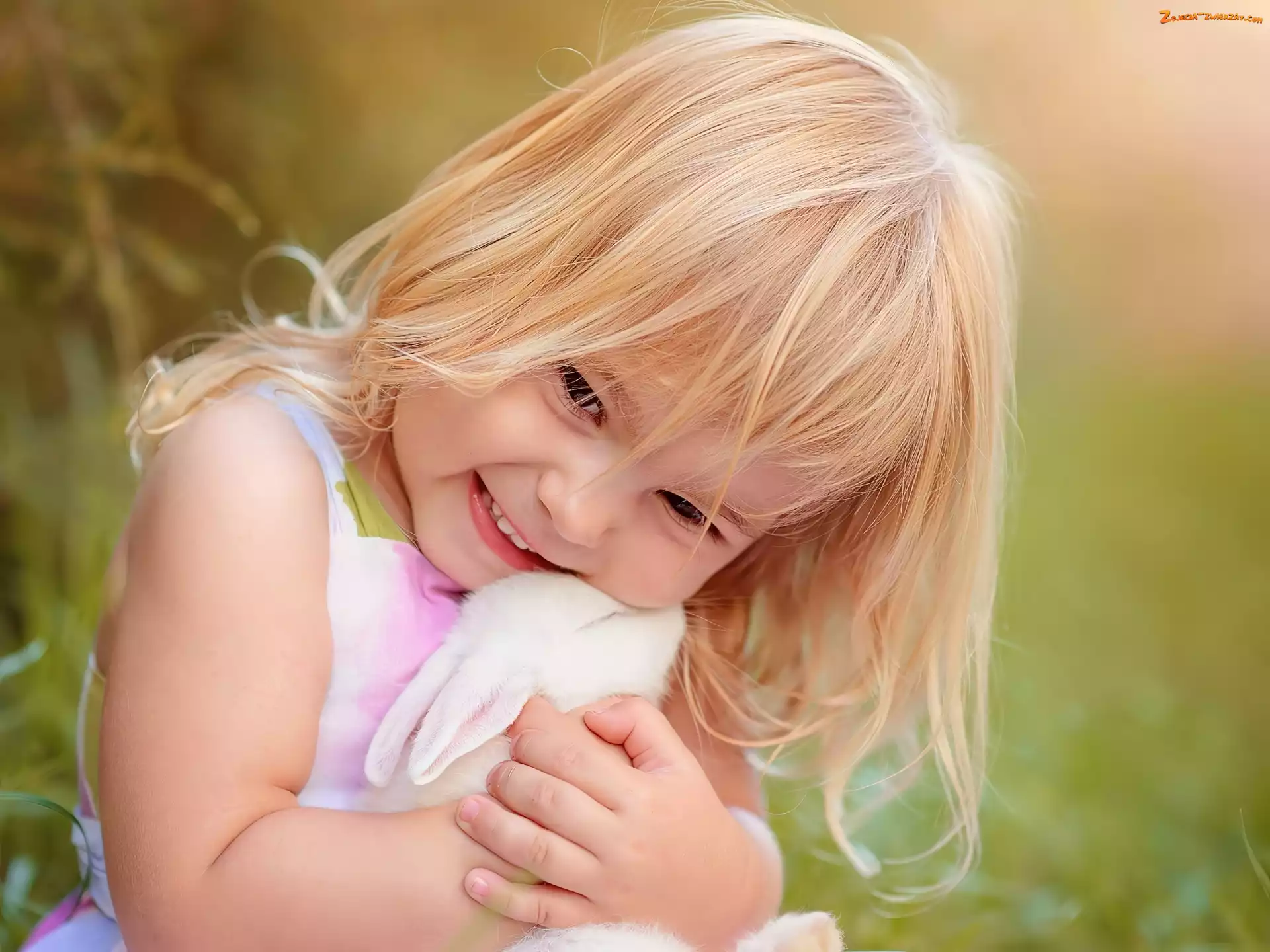 Zdjęcie: Łąka, Dziewczynka, Królik