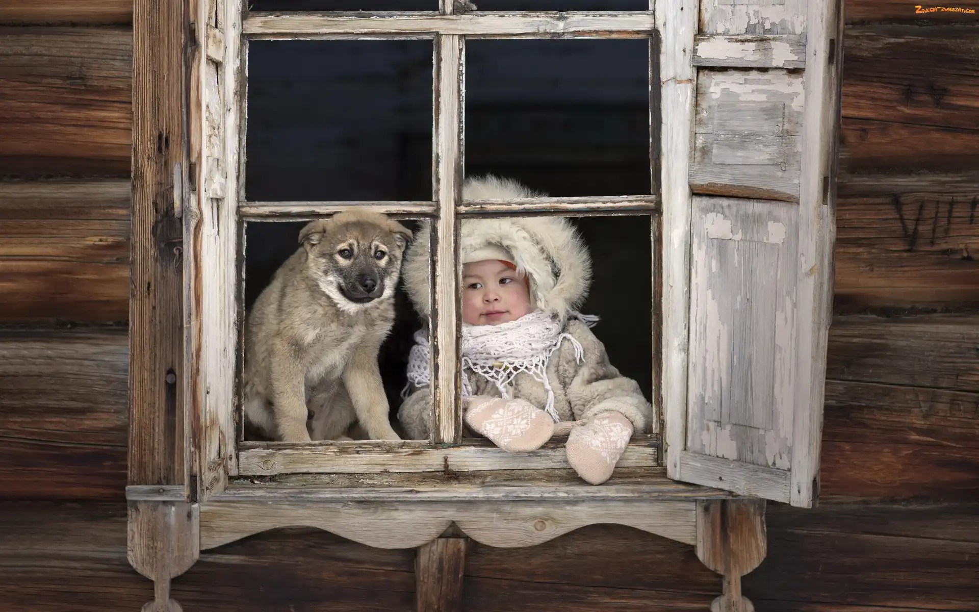 Zdjęcie: Dziewczynka, Okno, Dziecko, Pies