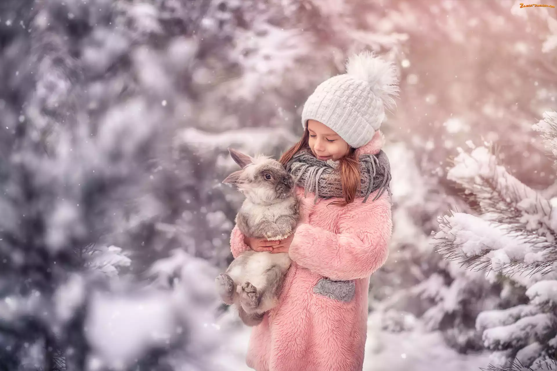 Zdjęcie: Dziewczynka, Zima, Dziecko, Królik