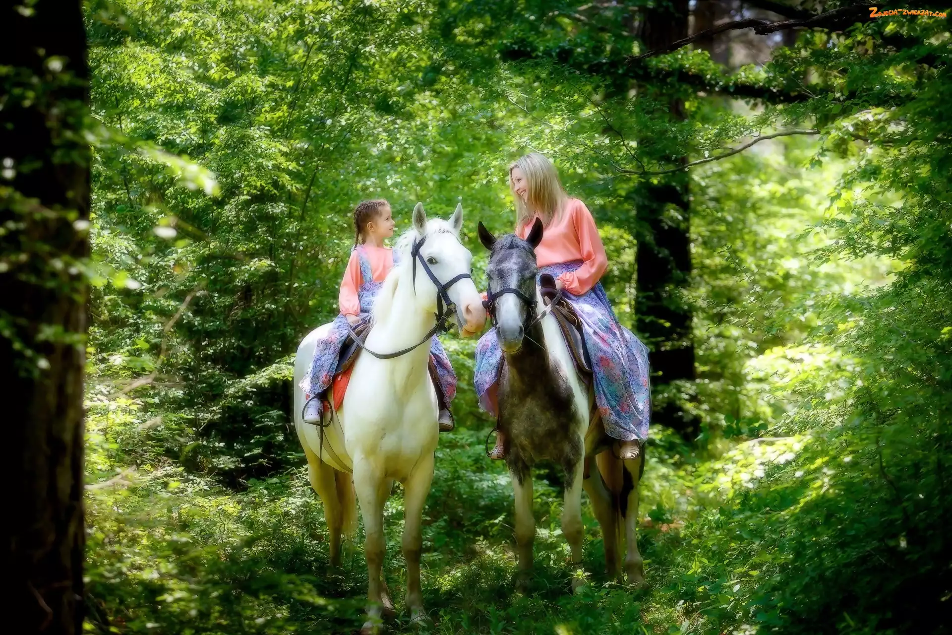 Zdjęcie: Dziewczynka, Las, Kobieta, Konie