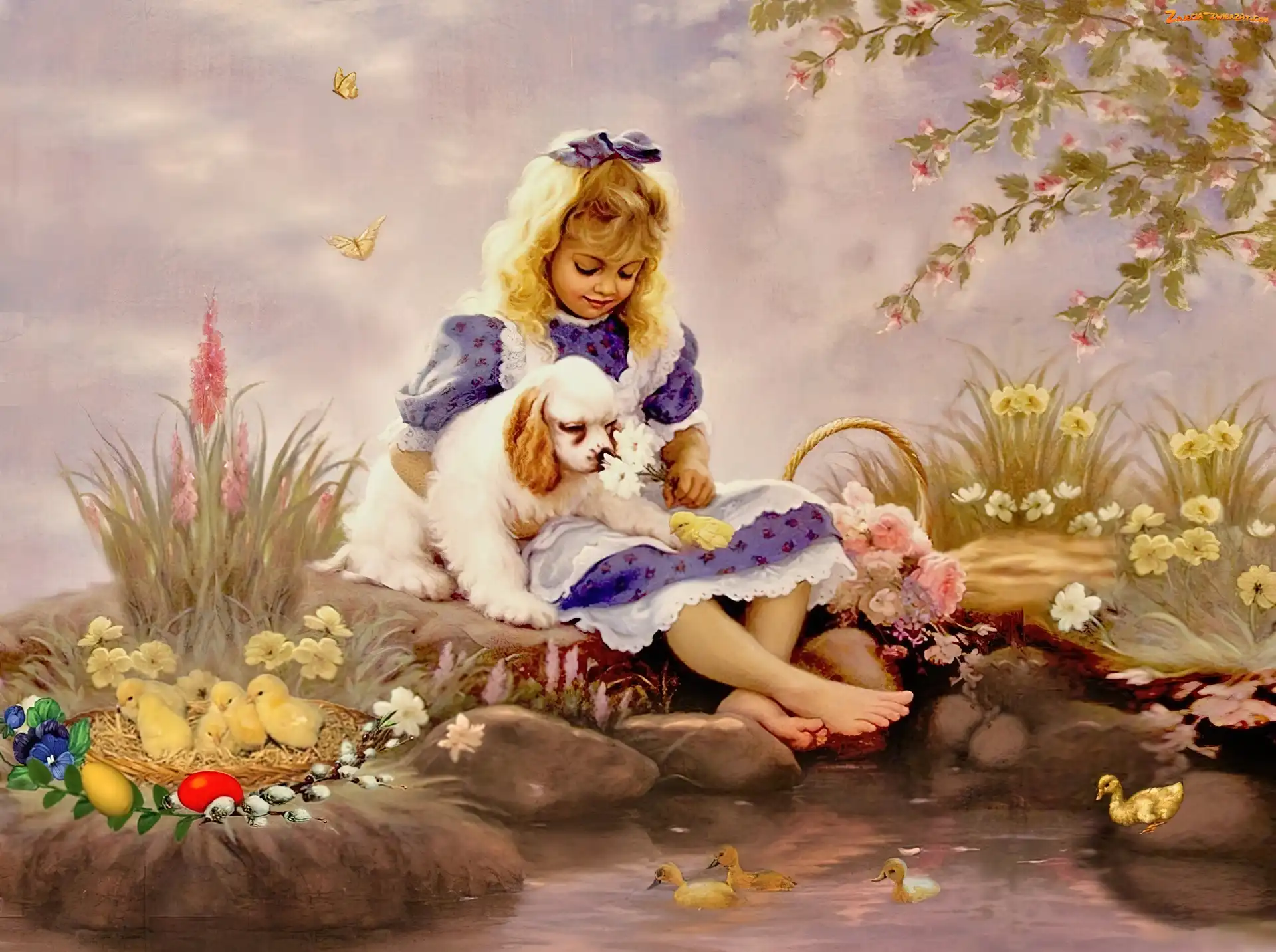 Wielkanoc, Dziewczynka, Pies