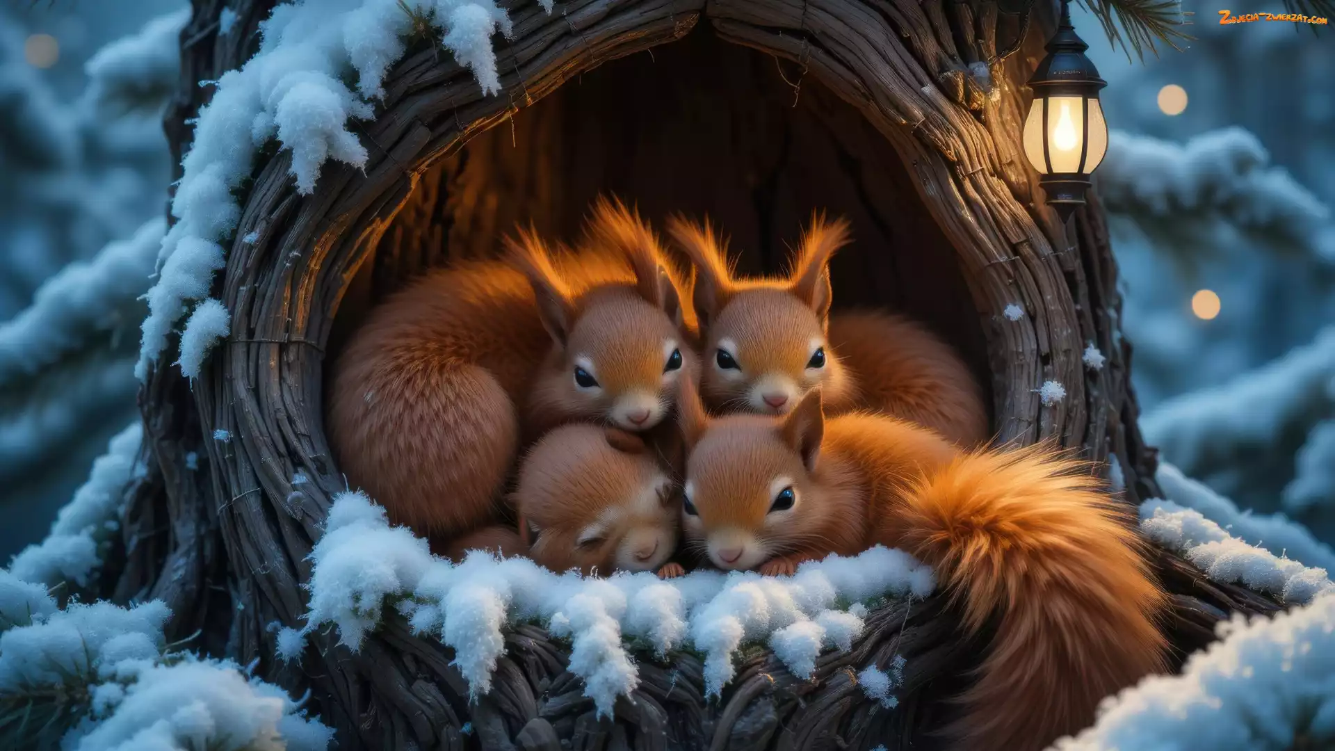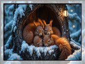 Zdjęcie: Lampa, Dziupla, AI, Zima, Wiewiórki