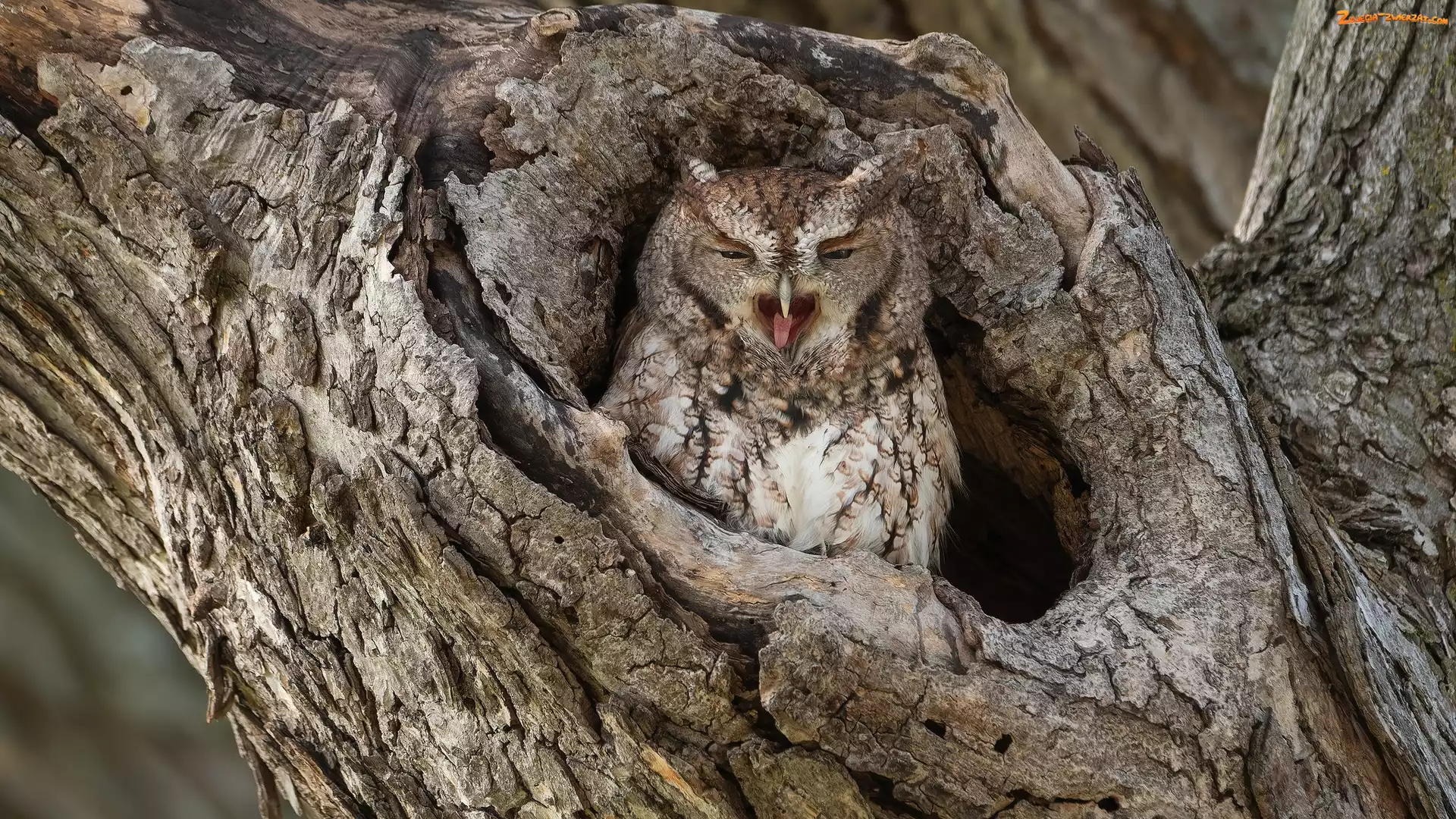 Zdjęcie: Drzewo, Syczoń krzykliwy, Dziupla, Ptak, Sowa
