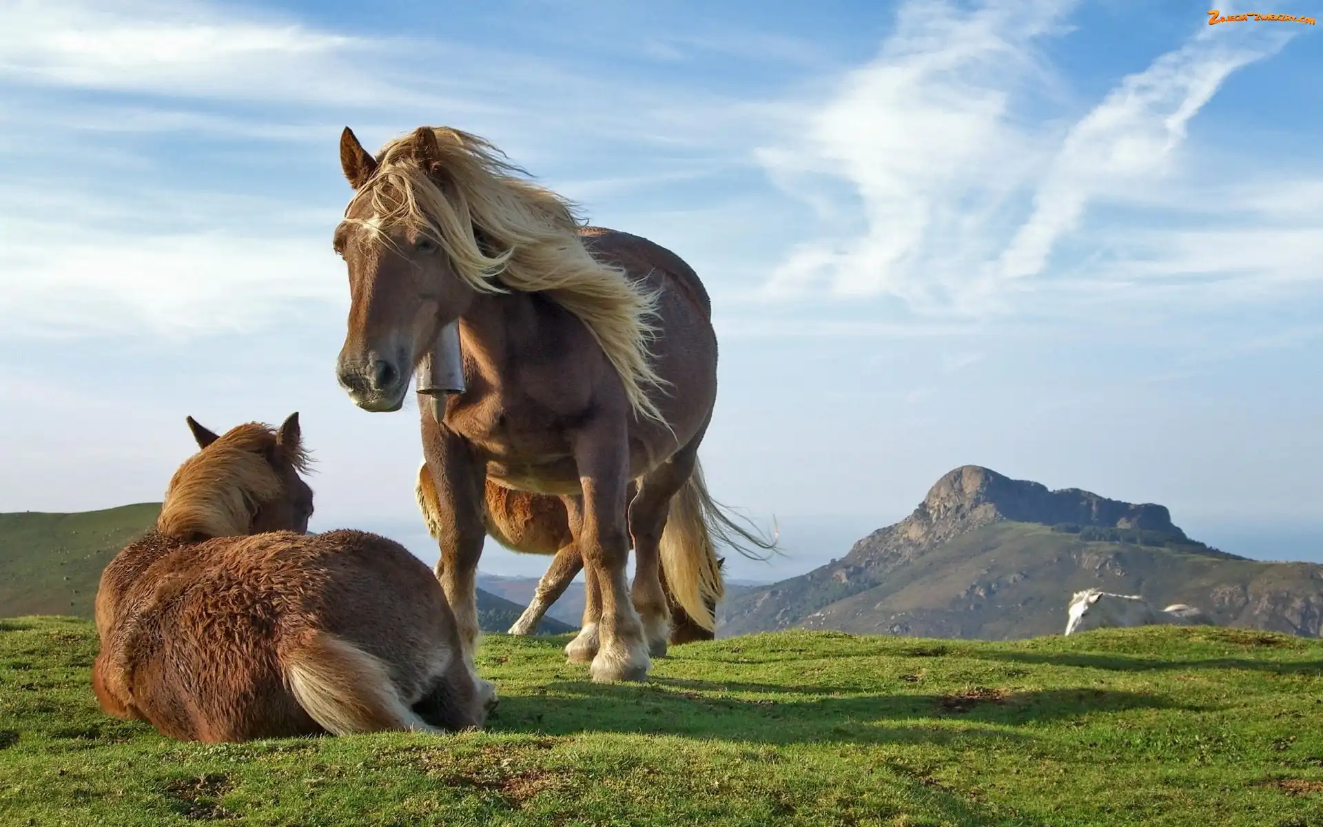 Zdjęcie: Niebo, Dzwonek, Konie, Góry, Wiatr, Grzywa, Łąka