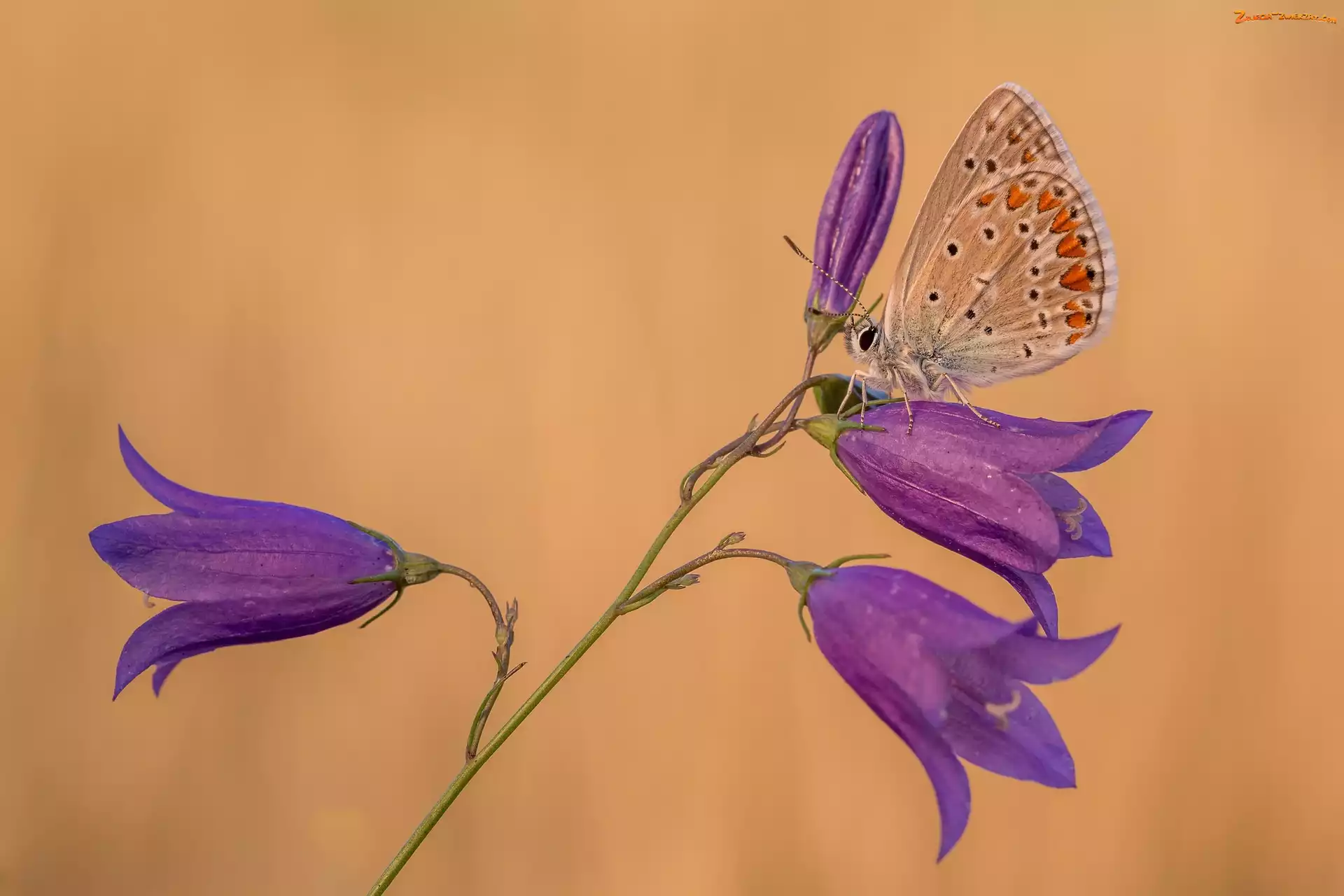 Zdjęcie: Dzwonki, Modraszek ikar, Kwiaty, Motyl