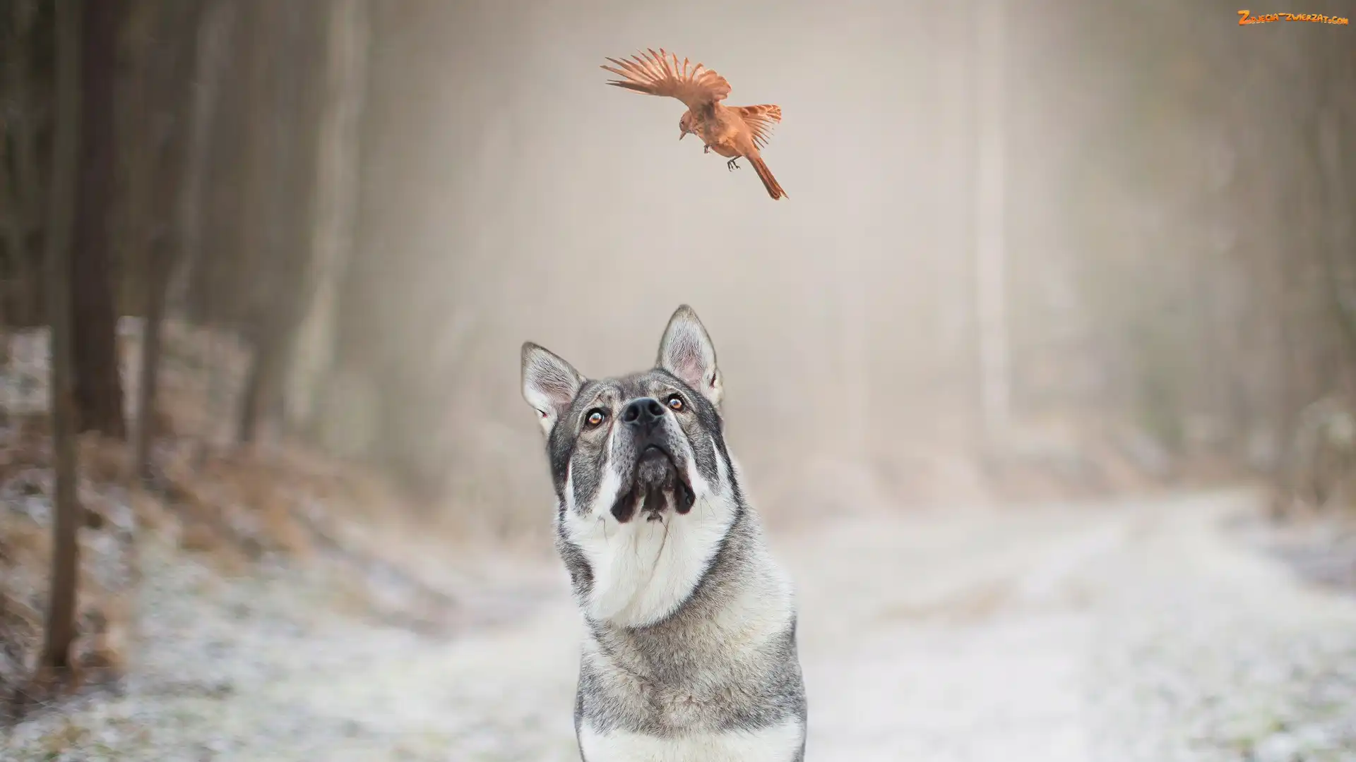 Zdjęcie: Elkhund, Drzewa, Pies, Ptak