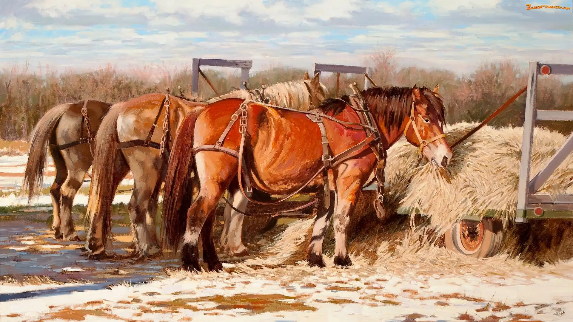Zdjęcie: Tony Eubanks, Malarstwo, Siano, Wóz, Obraz, Konie