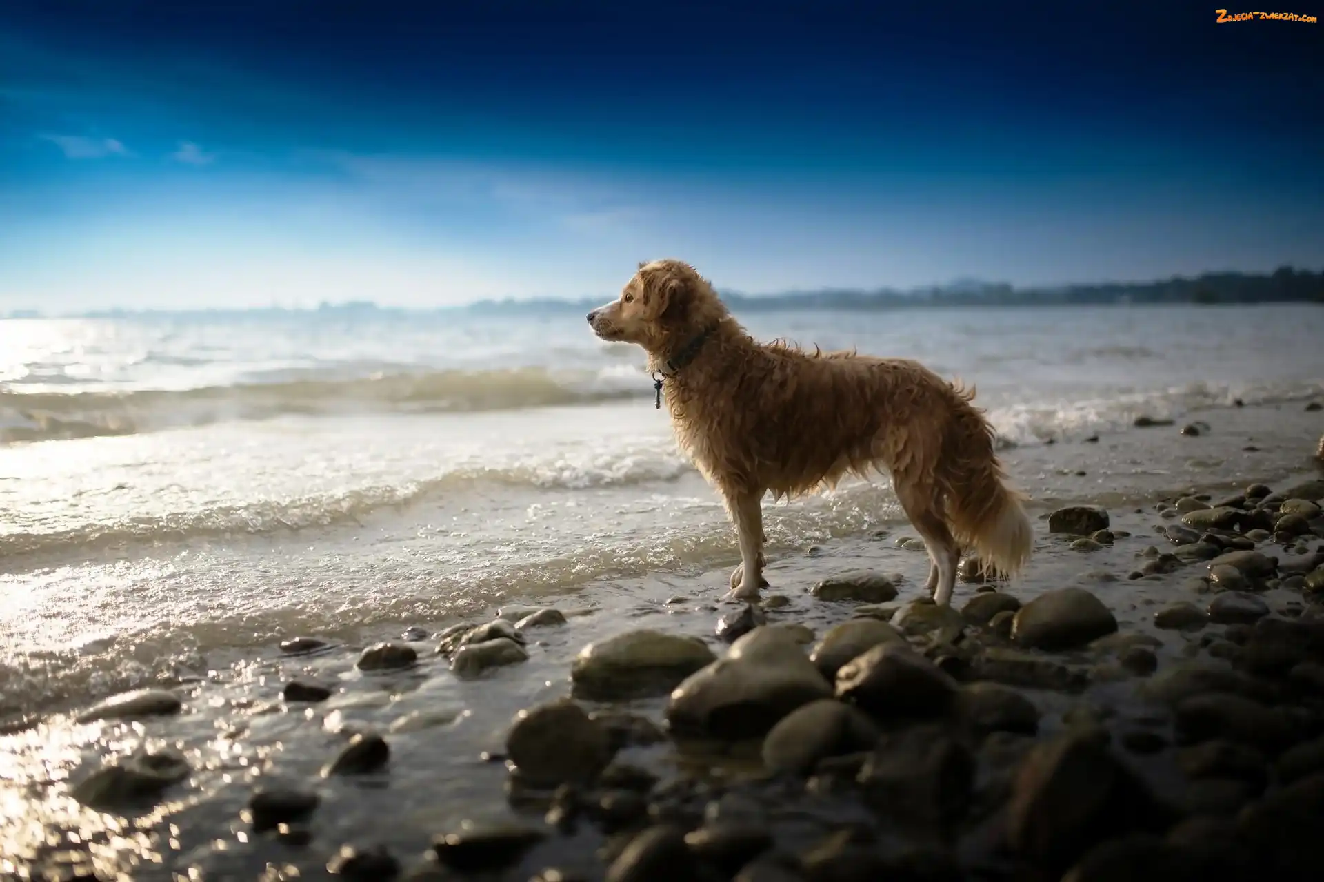 Fale, Morze, Oczekiwanie, Świt, Kamienie, Pies
