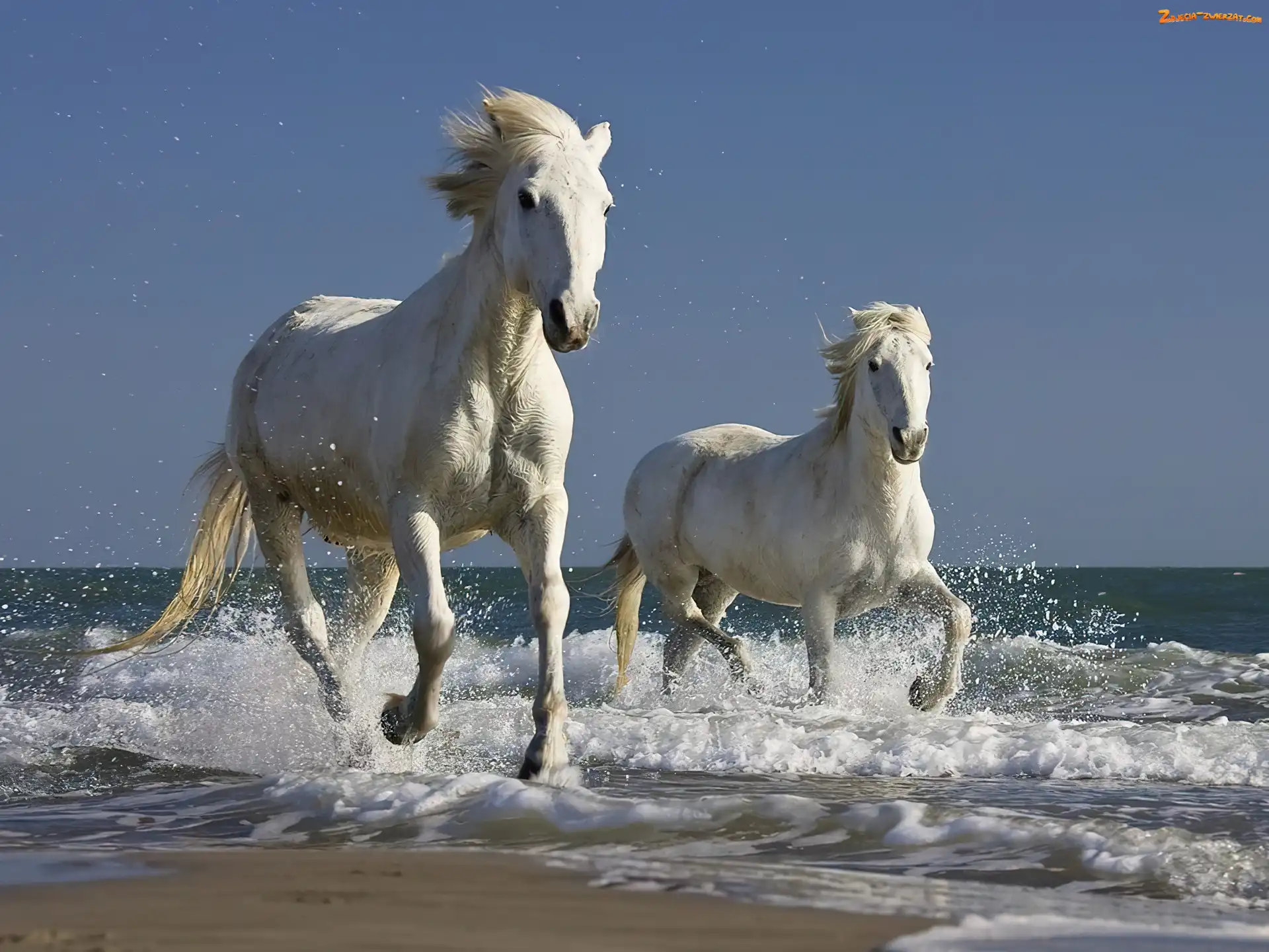 Zdjęcie: Fale, Kłus, Konie, Plaża