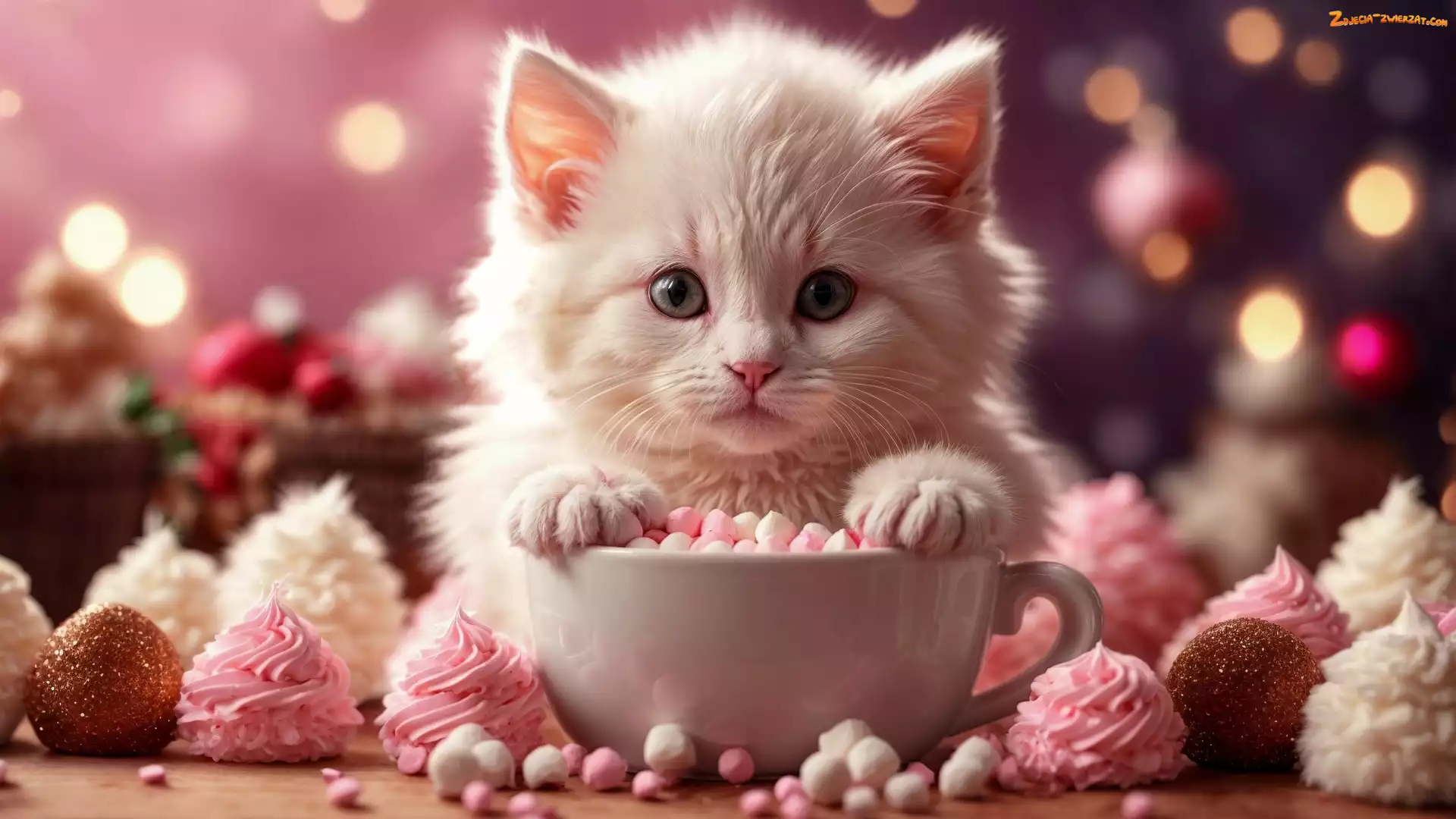 Zdjęcie: Biały, Kotek, Pianki, Filiżanka