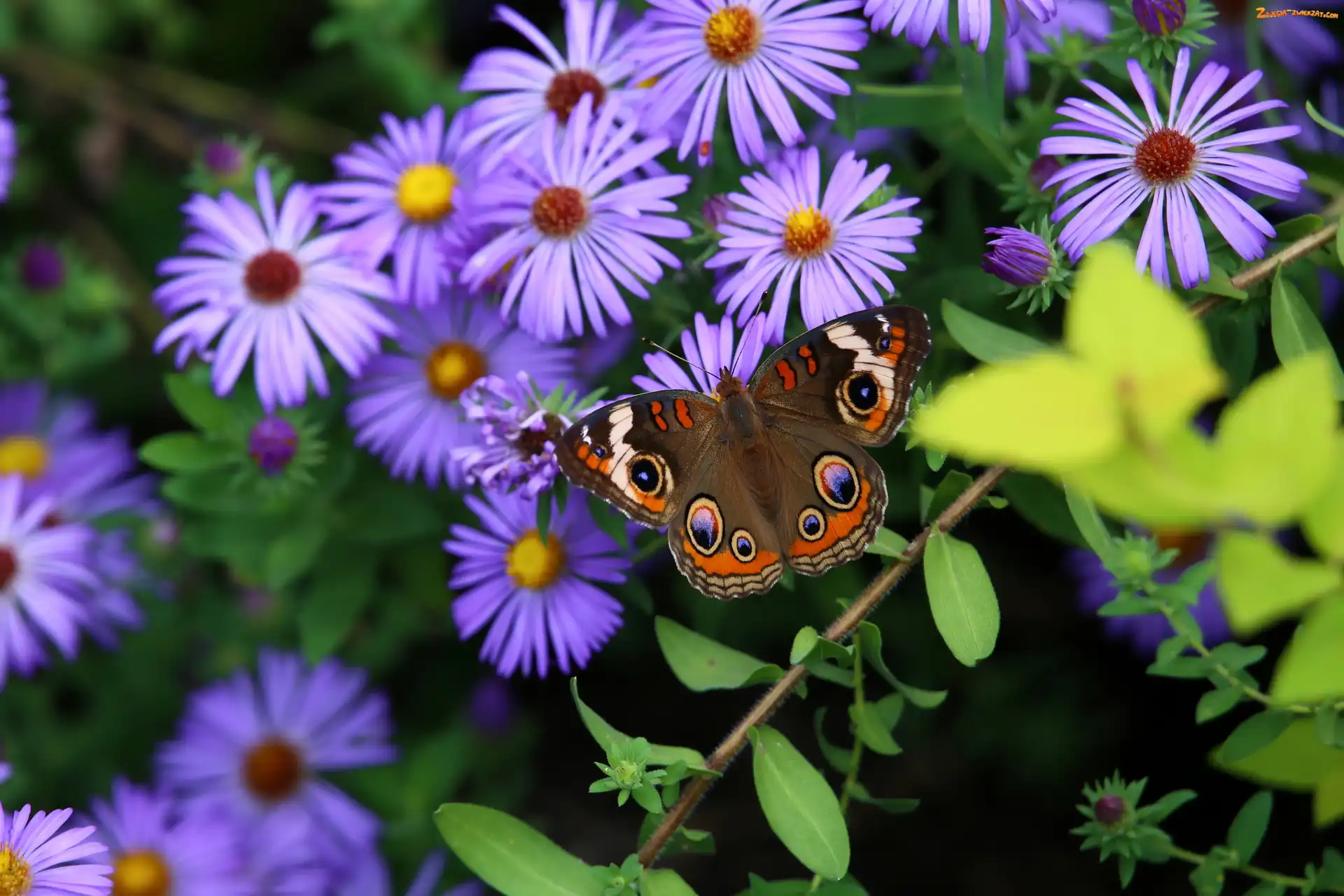 Zdjęcie: Fioletowe, Astry, Motyl, Kwiaty