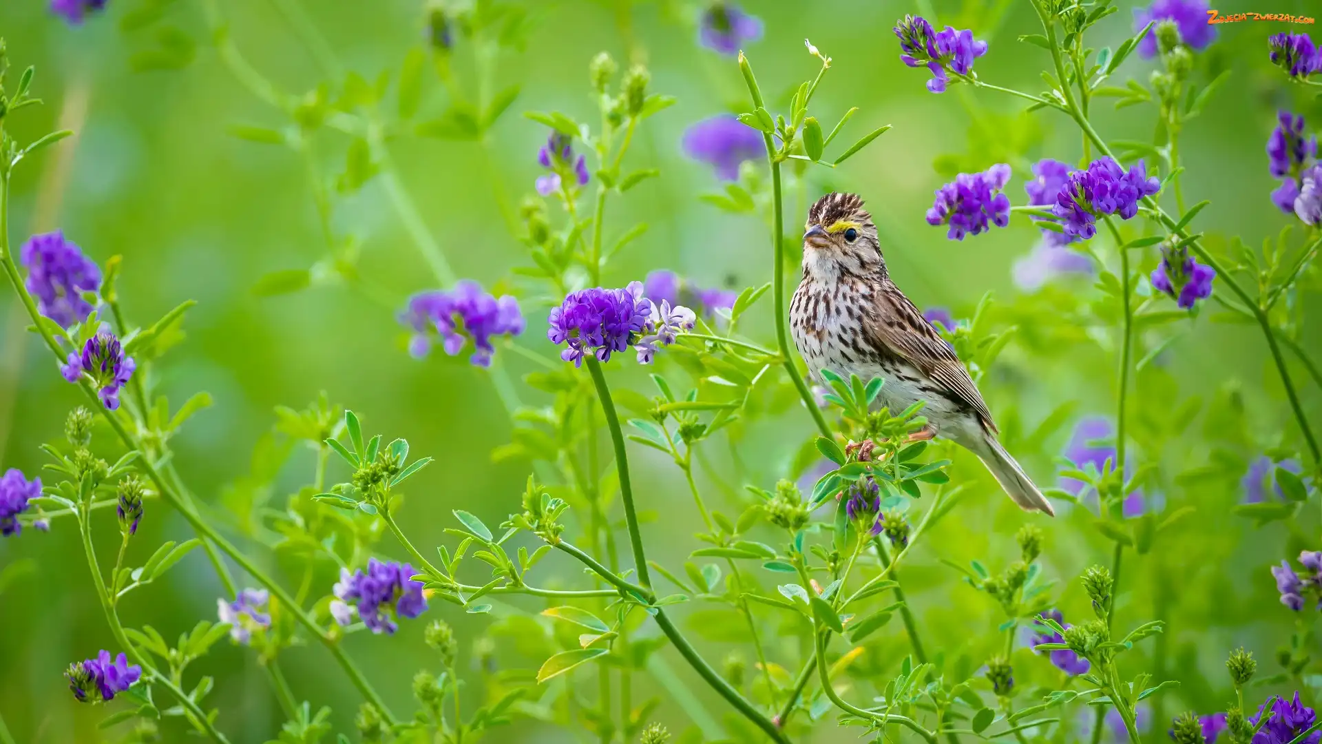 Zdjęcie: Ptak, Fioletowe, Kwiaty