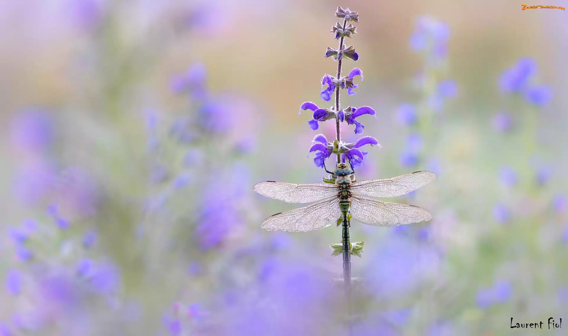 Zdjęcie: Ważka, Fioletowy, Rozmyte tło, Kwiat
